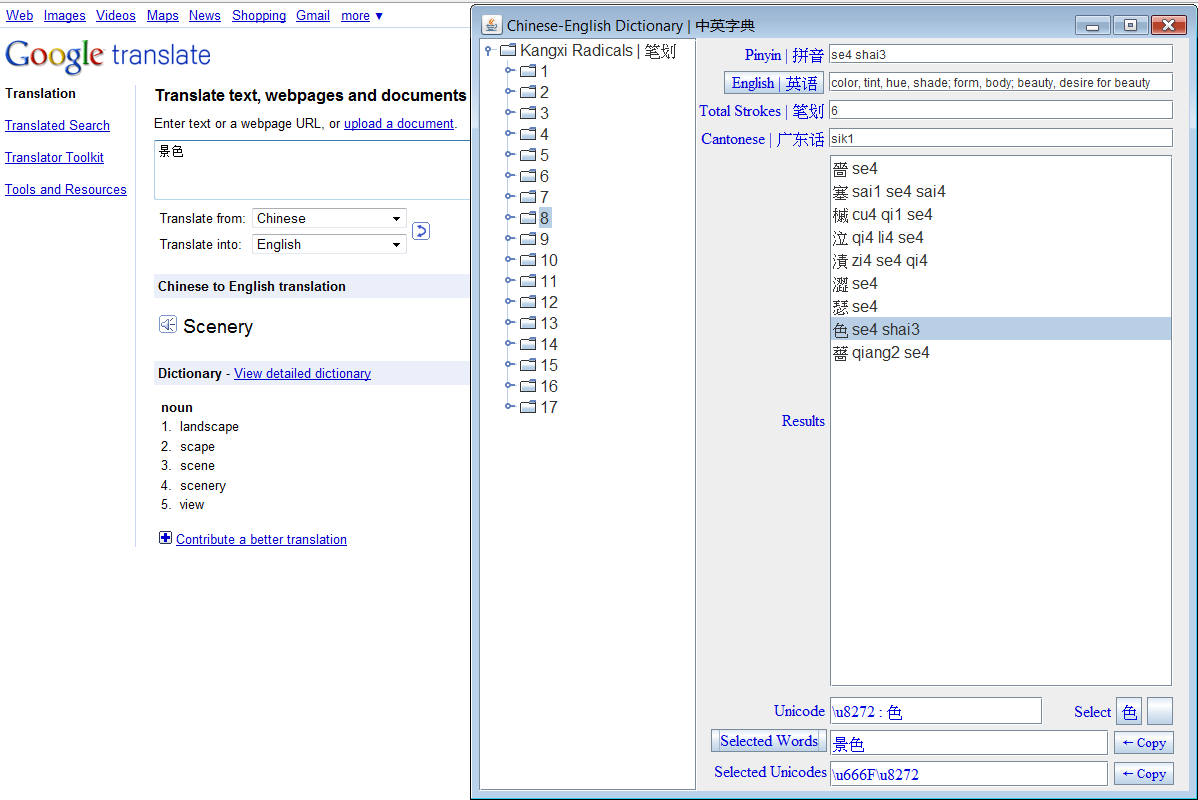 Lookup Chinese characters by English. | |||||||||