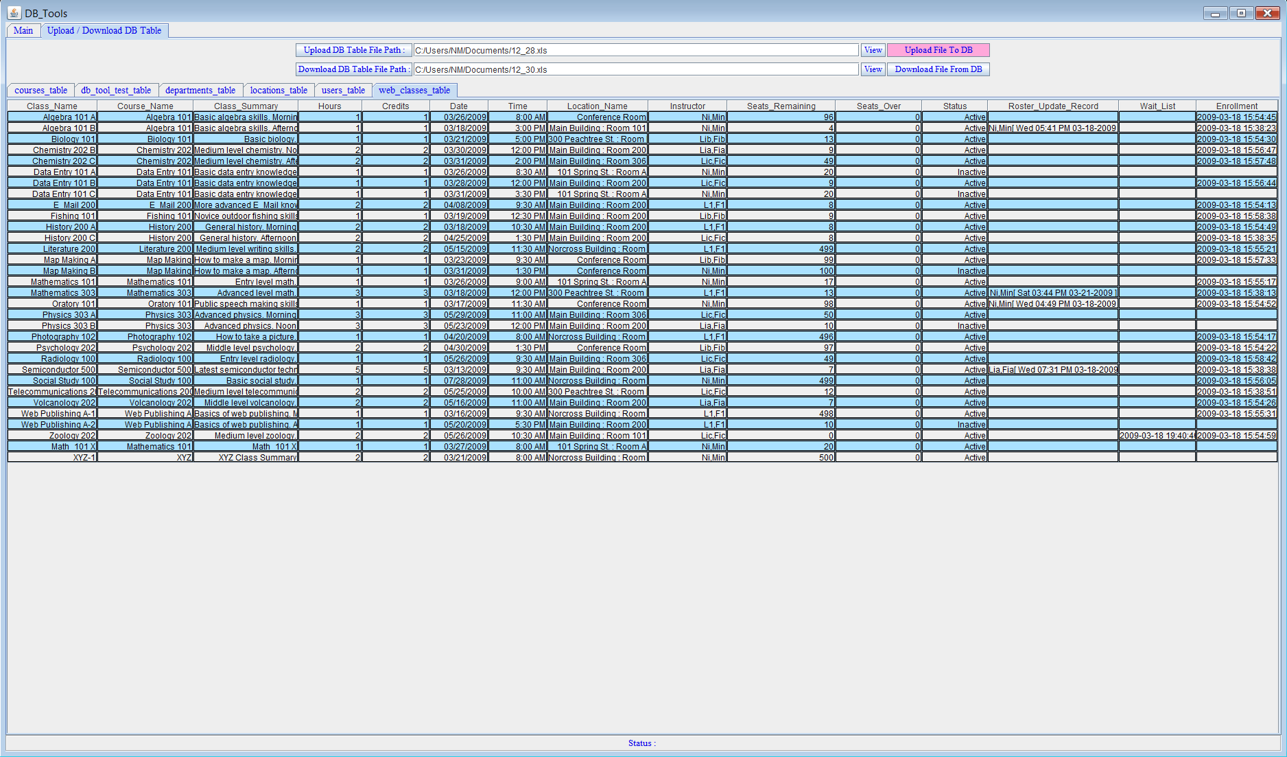 DB_Tools_Panel is a Java program that lets you view and save data to database, you can also upload or download Excel tables to and form database. But best of all , you can try it before you buy it !