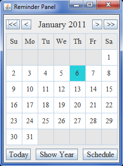 Reminder_Panel is a Java program that combines calendar, scheduler and alarm, it can use wildcards for time like this : 2011-01-28 X:30 , 2012-X-01 10:50 or Wed [ Last ] X:01. Able to record your voice and playback your recording on time. But best of all , you can try it before you buy it !